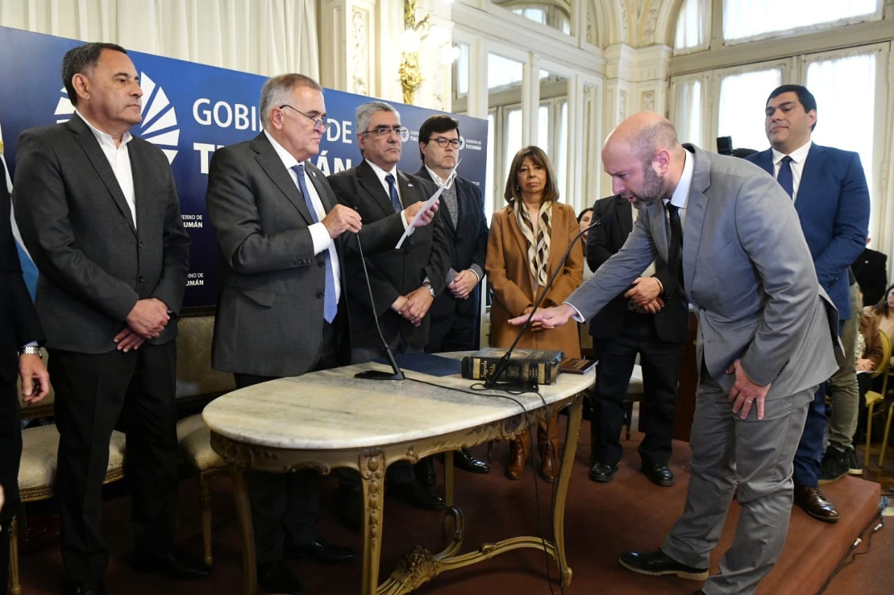 El gobernador, Osvaldo Jaldo, puso en funcionamiento a cuatro nuevos funcionarios provinciales, esta mañana, en un acto en el Salón Blanco de la Casa de Gobierno.